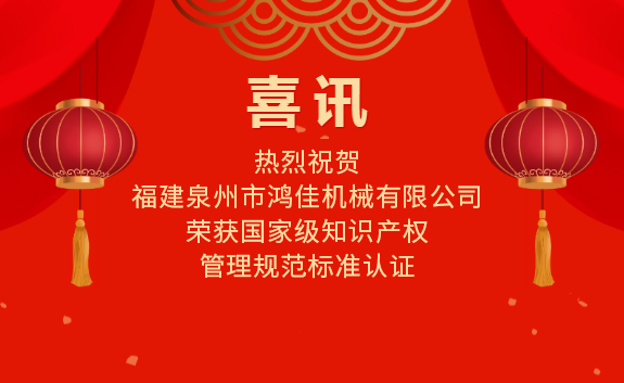 喜訊|熱烈祝賀福建泉州市鴻佳機械有限公司榮獲國家級知識產(chǎn)權(quán)管理規(guī)范標準認證